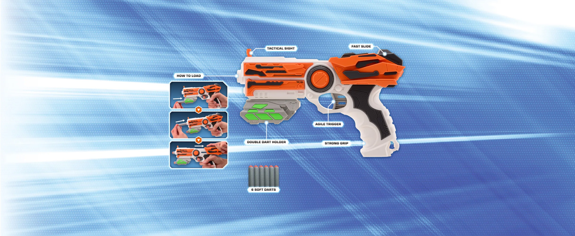 Met deze Shooter ben je helemaal klaar voor het gevecht. In het handige magazijn kun je 2 darts opbergen zodat je altijd klaar bent om te schieten. En door het eenvoudige herladen sta je altijd paraat. De Shooter komt met 6 darts en schiet wel tot 15 meter ver!